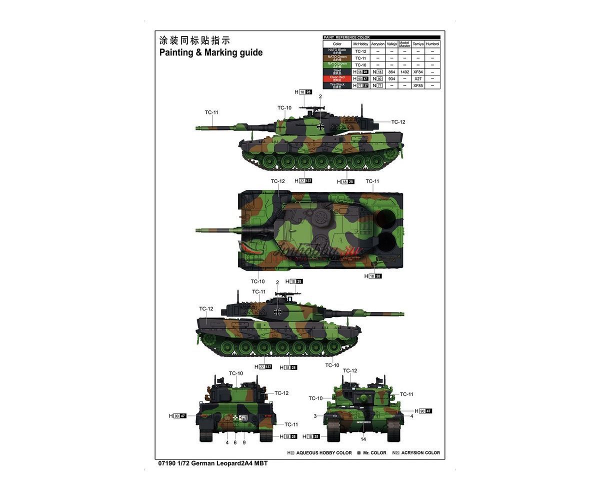German Leopard 2A4 MBT масштаб 1:72 Трубач TR07190