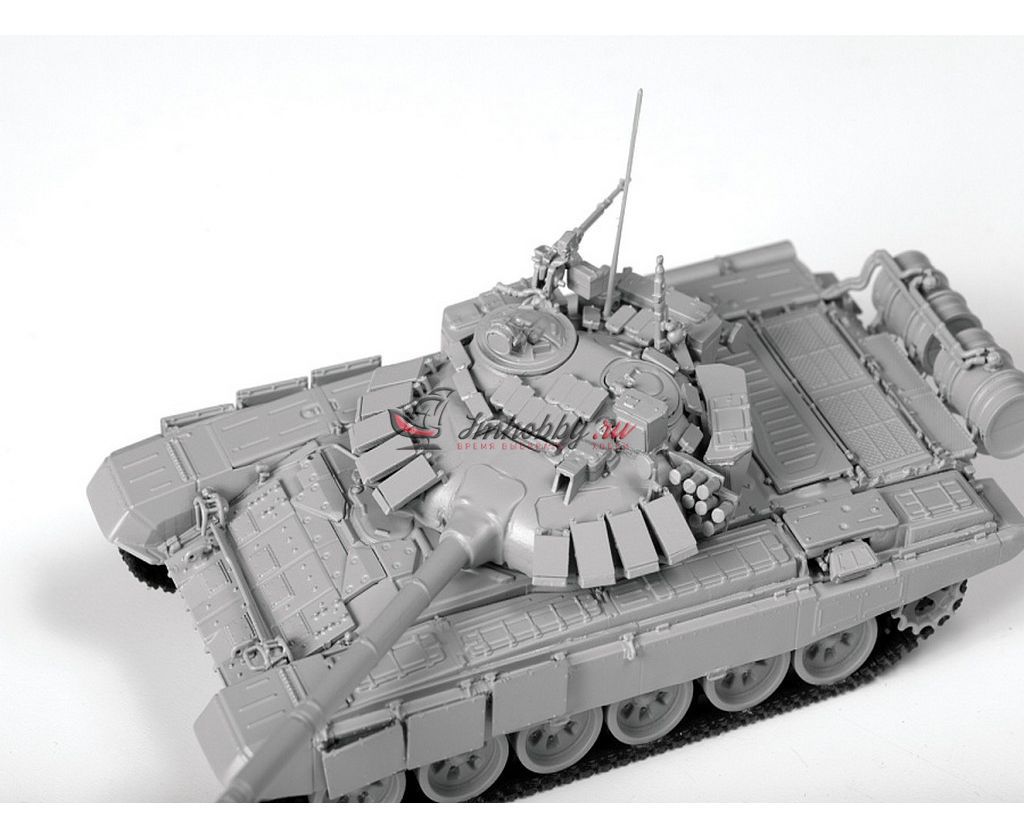 Сборная модель Российский основной боевой танк Т-72Б3 в масштабе 1:72. Т-72Б3 - модификация российского основного боевого танка семейства Т-72, разработанная в 2011 году на «Уралвагонзаводе» в Нижнем Тагиле. Т-72Б3 скоростной и манёвренный. Дизель В-84-1 мощностью в 840 л.с. разгоняет танк по шоссе до скорости 65 км/ч, поэтому на нём используются новые гусеницы с параллельными резинометаллическими шарнирами траков.