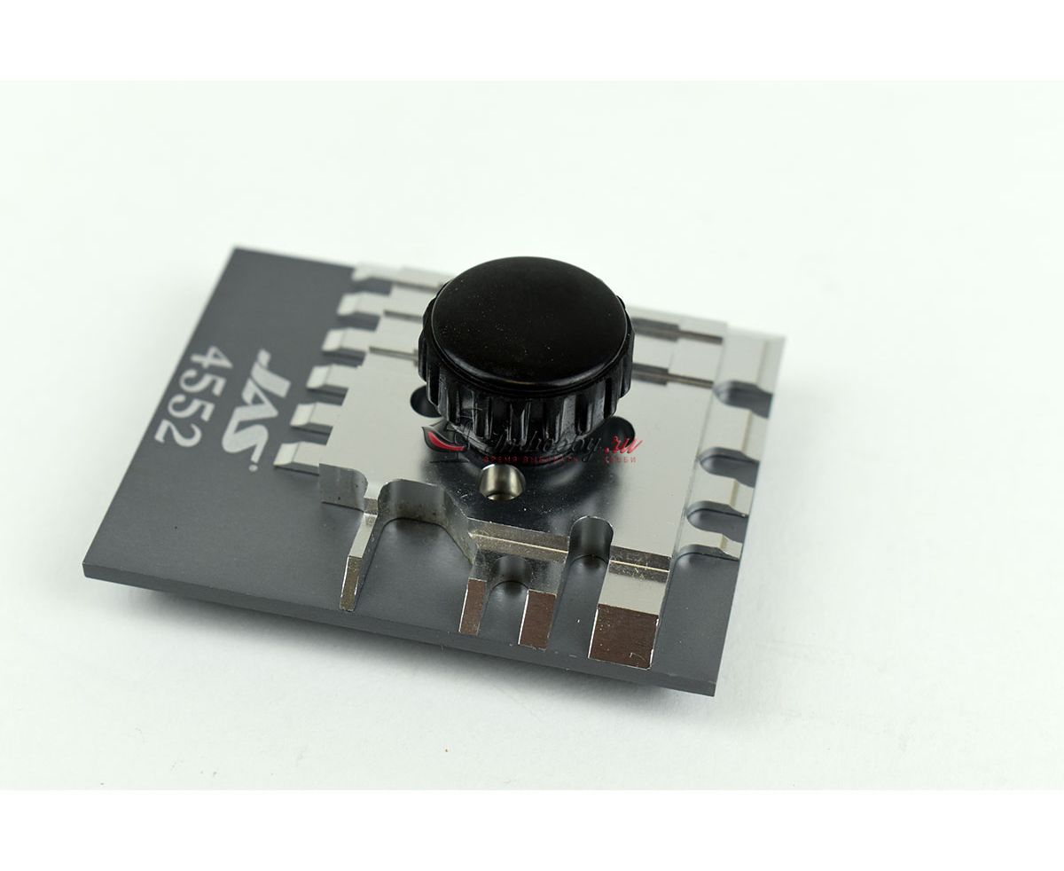 Зажим для работы с фототравлением JAS 4552, размер основания 50х65 мм. Позволяет легко, быстро и, что самое главное, точно сгибать различные фототравленные детали. Благодаря имеющимся выступам, можно сгибать сразу три стороны детали (например, при изготовлении короба). Инструмент позволяет делать Z и П-образные загибы, короба и полки.