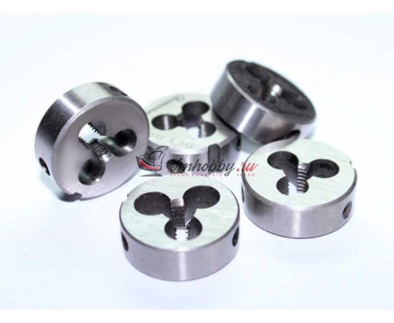 Плашками нарезают внешнюю резьбу. Данная плашка предназначена для нарезания резьбы на цветных металлах, стали, пластике и твердом дереве. Плашки сделаны на российских предприятиях, это не Китай. Резьба М1,8х0,35 мм.