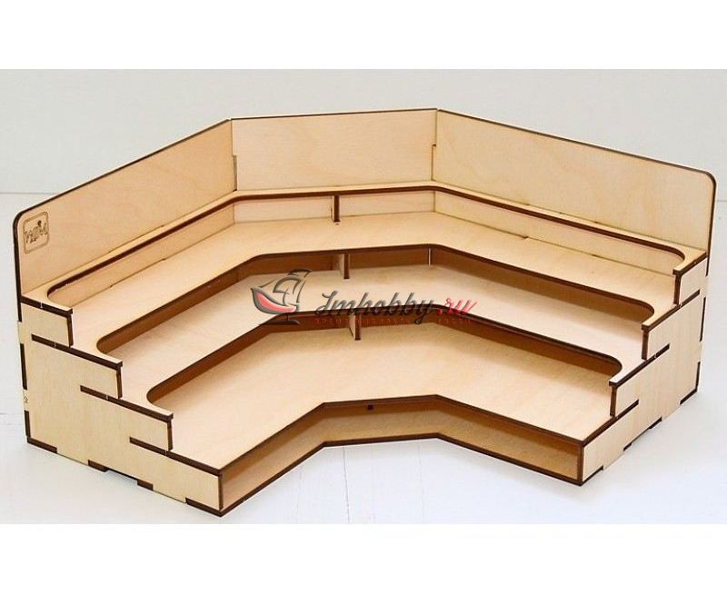 Набор заготовок для сборки углового модуля-органайзера со ступенчатыми полочками. Данный модуль позволит вам достаточно оптимально использовать угловое пространство рабочего стола при сборке модульного рабочего места.