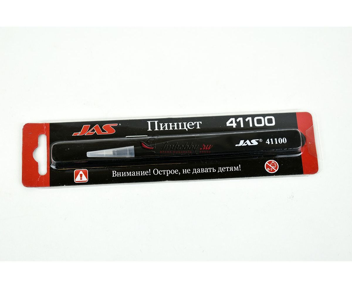 Прямой острый пинцет длиной около 12 см. Губки пинцета не имеют насечки и не магнитятся.