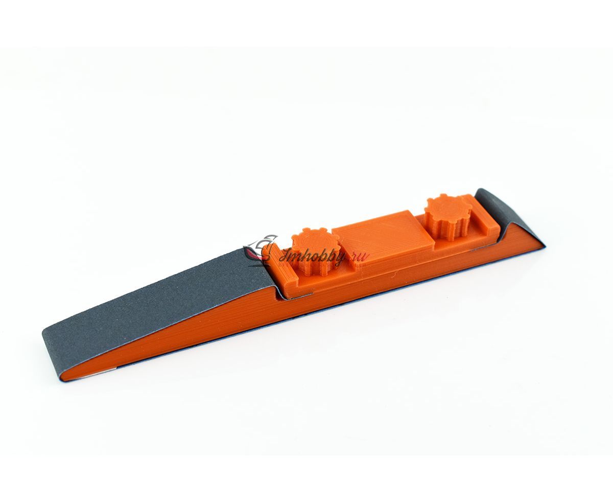 Миниатюрный шкурник, он же держатель наждачной бумаги, шириной всего 15мм и длиной 129мм. Наждачная бумага фиксируется прижимной пластиной при помощи двух винтов. Шкурник удобен при обработке небольших деталей, работе в труднодоступных местах т.е. везде где нельзя добраться стандартным шкурником или требуется зачистить небольшую поверхность.