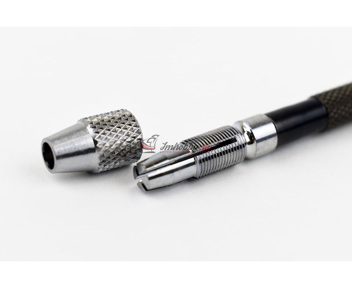 Самая удобная сверлилка для микросверл до 1 мм. Удобный, легкий цанговый зажим изготовлен из алюминия. Лепестки цанги имеют идеально точное сочленение, что обеспечивает жесткую фиксацию сверла. Диапазон зажимаемых сверл от 0,1 до 1,0 мм.