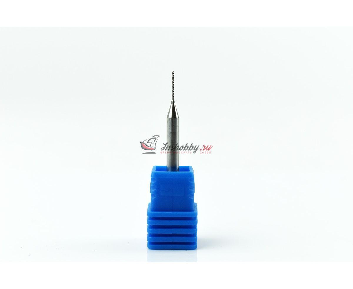 Сверло диаметром 0.9 мм из вольфрамовой стали с утолщенным хвостовиком 3.175 мм. За счет спиральной формы сверла, хорошо удаляется стружка и отверстие получается ровным с чистыми стенками.