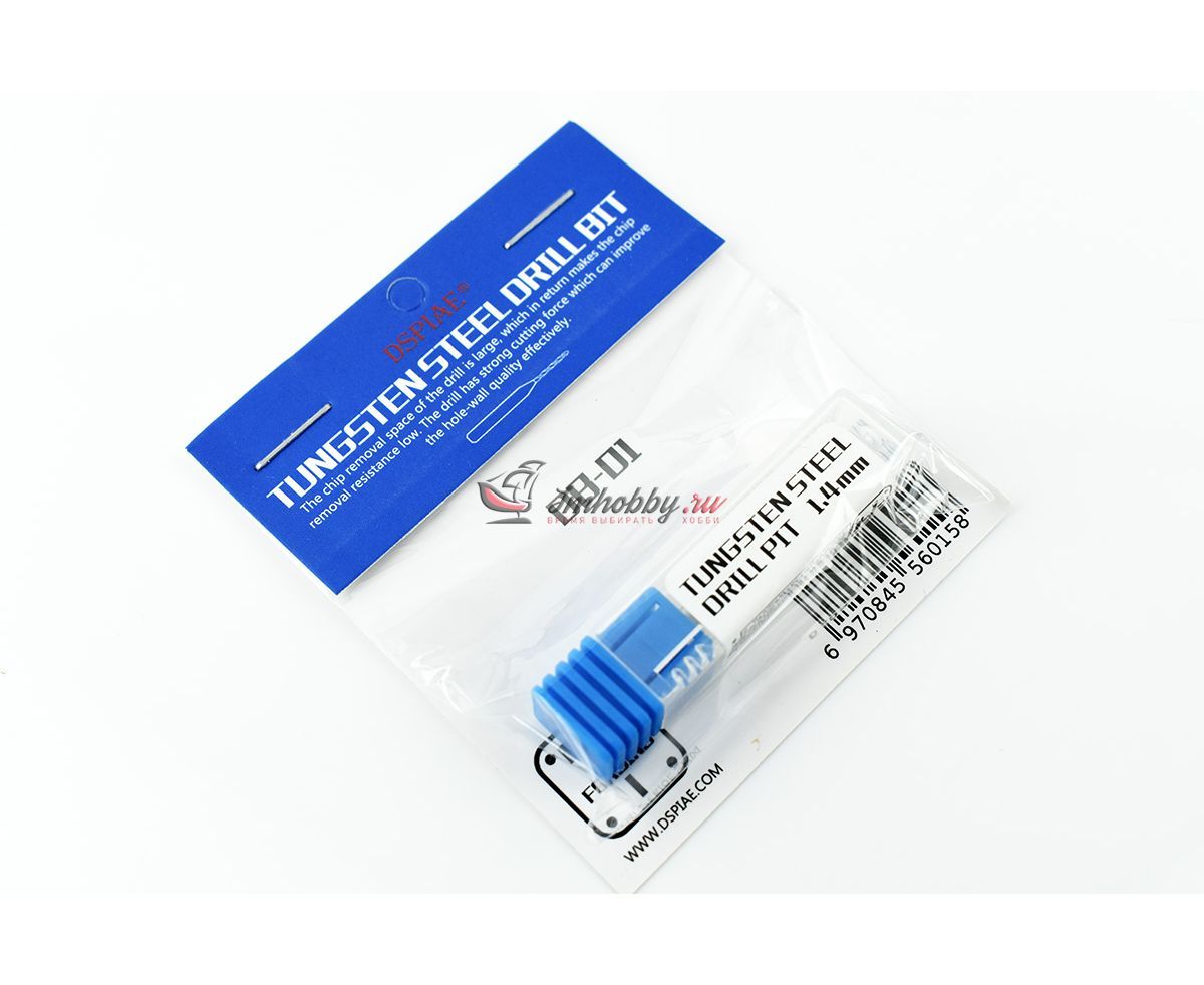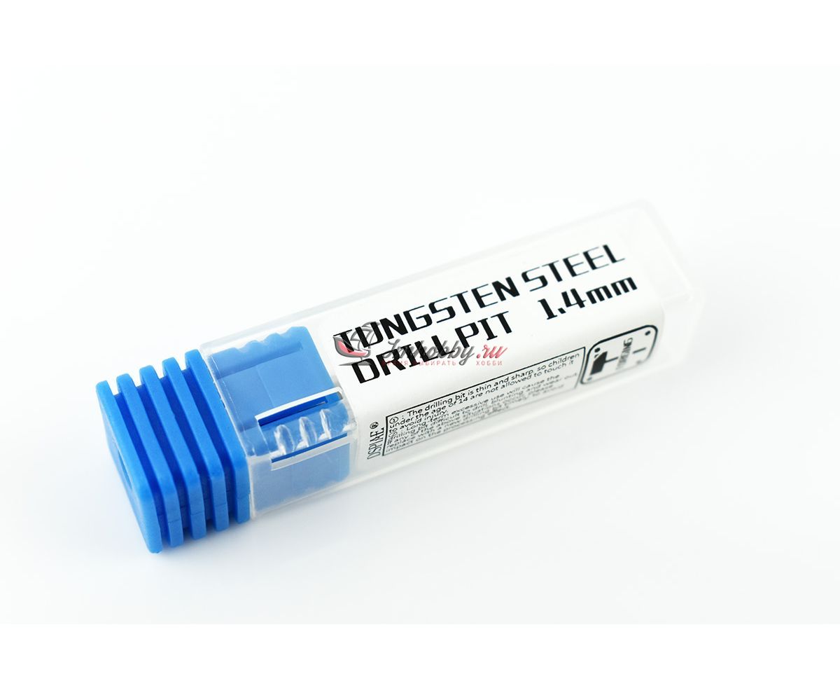 Сверло диаметром 1.4 мм из вольфрамовой стали с утолщенным хвостовиком 3.175 мм. За счет спиральной формы сверла, хорошо удаляется стружка и отверстие получается ровным с чистыми стенками.